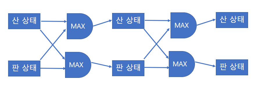 현재 상태가 가질 수 있는 가장 큰 이익을 저장하며 마지막 상태에서 가질 수 있는 가장 큰 이익값을 반환한다. (동적 계획법)
