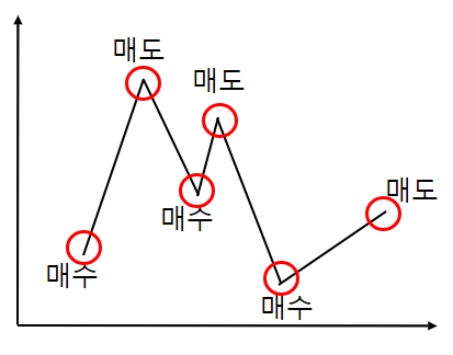 주식 가격으로 생각한다면, 저점에서 사서 고점에 파는걸 반복하면 가장 많은 이득을 가지게 된다.