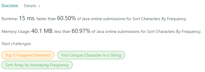 | [LeetCode] 451. Sort Characters By Frequencyl / JAVA (0) | 2021.10.23 |