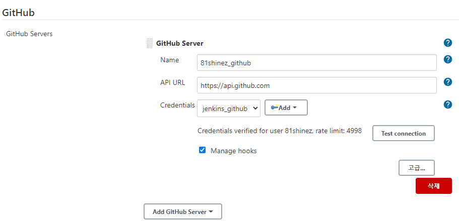 Credentials에서는 여기서 생성한 Credential을 넣으면 된다.